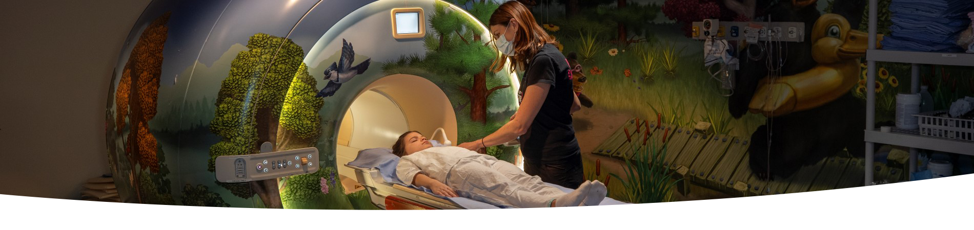 You will have to fill out a screening form (if you have not filled it out on MyChart). Your child will have to change into hospital clothing or pyjamas. If your child is wearing period panties or athletic underwear, a disposable substitute will be given to change into. For patients receiving contrast or anaesthesia, an IV will be inserted in your child’s hand, arm, or foot. The MRI Technologist will explain the exam and review the patient screening questions with the parent or caregiver. For patients requiring additional support from a parent or caregiver, they will also be screened at this time. Your child will then enter the MRI scanning room with the technologist. We can provide a blanket if needed.