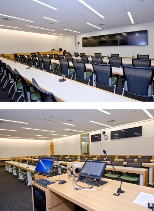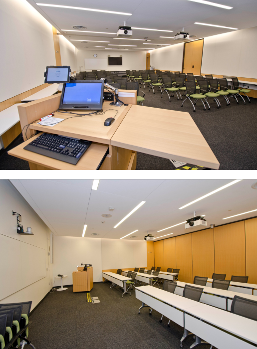 The Learning Concourse features state-of-the-art audio-visual technologies including stunning high-definition monitor displays and permanently installed projection screens. Several of the spaces also feature video conferencing ability to increase communication capabilities between professionals on site, in the community or around the world. Our highly skilled onsite audio-visual team will provide exceptional service to help address your audio-visual needs.