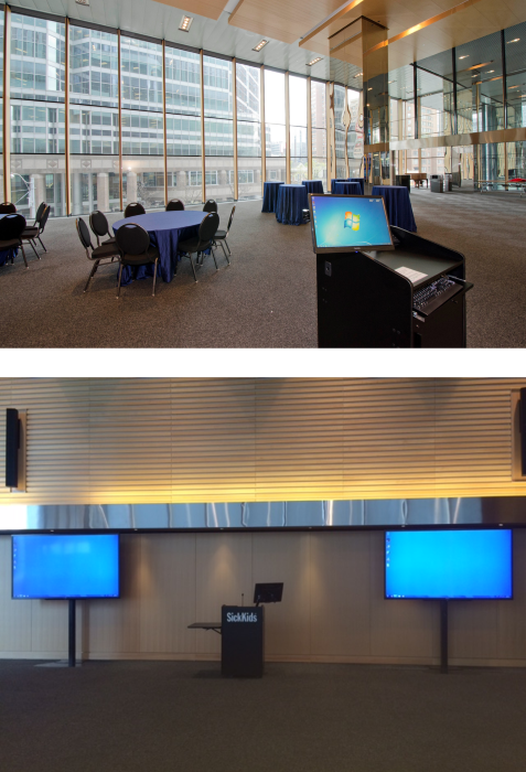 The Learning Concourse in the Peter Gilgan Centre for Research and Learning is located within Toronto’s Discovery District. It serves as a state-of-the art meeting, learning and collaboration space for SickKids staff, as well, as our community partners. The space includes a 250-seat state-of-the-art auditorium and a two-story window encased gallery, as well as, smaller multi-functional meeting and congregation space equipped for local and virtual event opportunities.