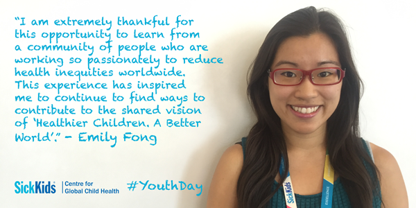 For International Youth Day, The Hospital for Sick Children (SickKids) is celebrating the students who have joined the SickKids Centre for Global Child Health for their summer placements. These students are working with leading research investigators to help improve the lives of children and their families living in Asia, Africa and the Caribbean. As one of the world’s foremost paediatric health-care institutions and Canada’s leading centre dedicated to advancing children’s health, SickKids is in a unique position to make an impact on a global level. The Centre for Global Child Health is dedicated to improving the lives of children and their families in resource-poor environments around the world. Youth have the power to shape their lives and the lives of others to help make a better world.