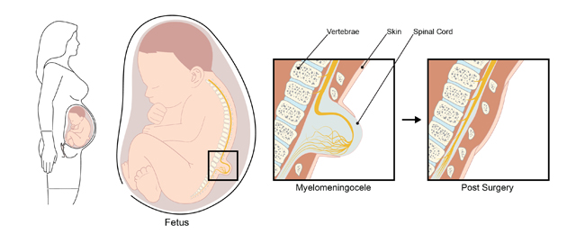 Myelomeningocele is a form of spina bifida, affecting approximately 120-150 babies in Canada each year. It is caused when the spinal column fails to close early in fetal development, causing permanent damage to the baby’s spinal cord and nervous system.