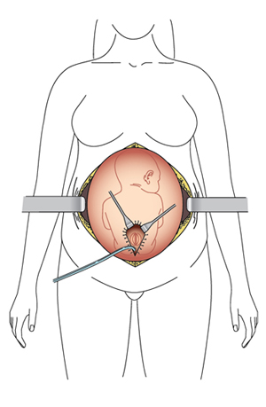 - Drs. Ryan and Van Mieghem closed the uterus, taking great care to create a watertight seal to ensure that there was no leakage of amniotic fluid.