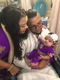 When Melinda Mahabir and her husband Kelvin S. Kerut wanted to host a religious ceremony at SickKids for their six-month-old daughter Meliyah, they turned to staff for help. Chandra Ram, Interfaith Chaplain, and Fred MacKay, Supervisor of Spiritual and Religious Care, were happy to assist.