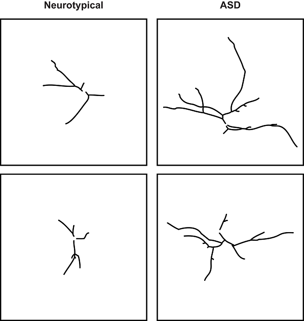 On the left, brain cells from the control group. On the right, the overconnected and overactive brain cells from individuals with autism.