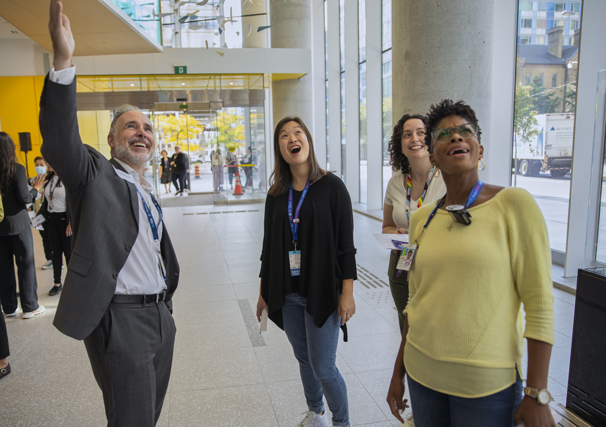 Staff had the chance to explore the new building at an open house earlier this week. It was a day of pride and excitement, as they envisioned the impact this building will have through sustainable and inclusive design, staff wellness spaces, and connections to the hospital and SickKids Research Institute.