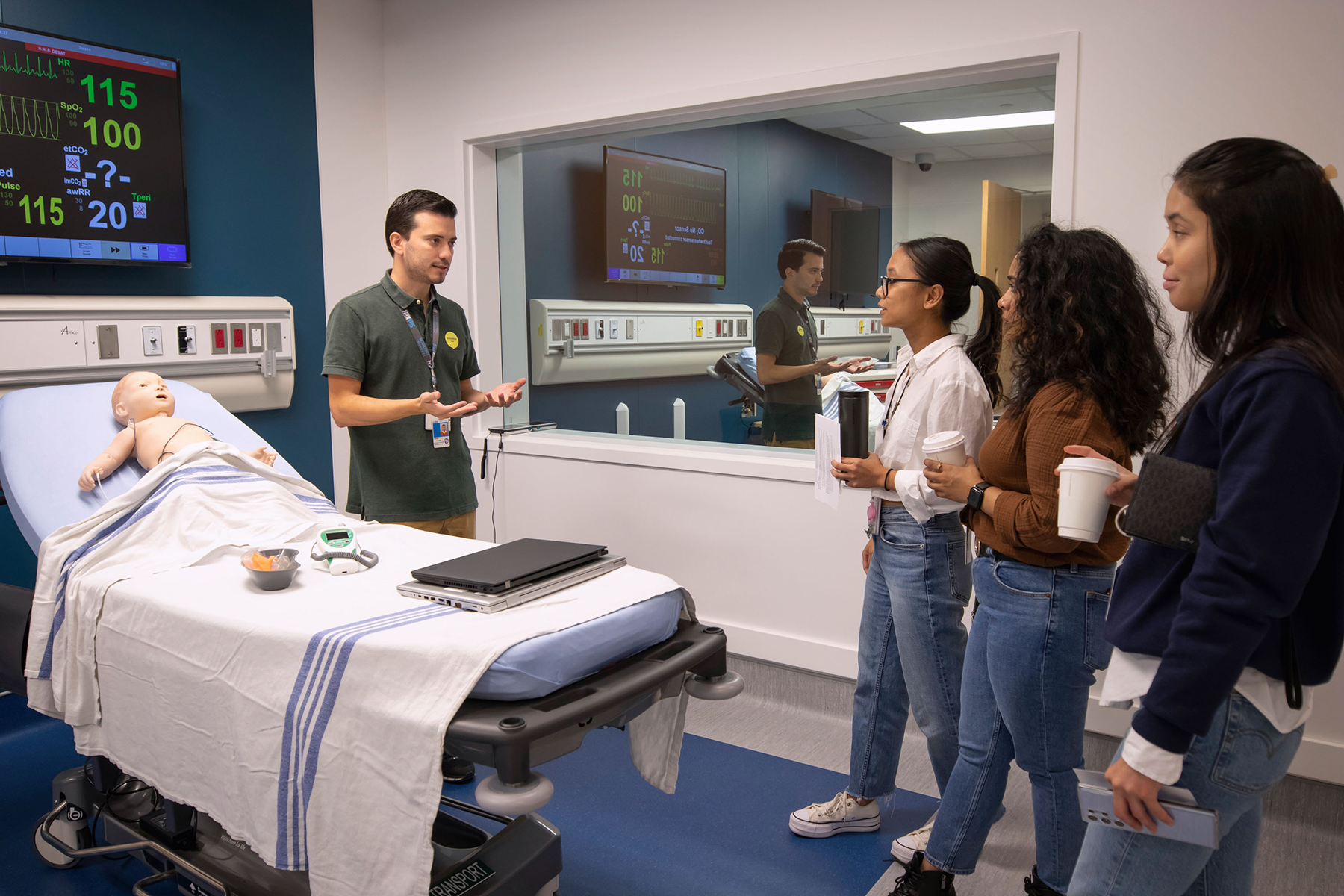 Rafael Velasquez, Senior Simulation Specialist, demonstrating the features and function of a high-acuity simulation room in the new Simulation Centre.