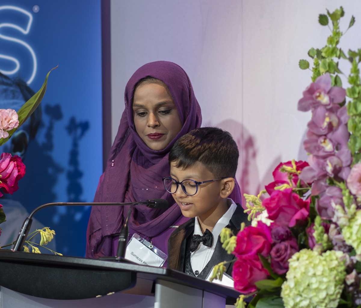 Quais Sultan, SickKids patient and his mother Sumayya also spoke at the event. They reflected on their journeys after Quais' cancer diagnosis, and their experience at SickKids.