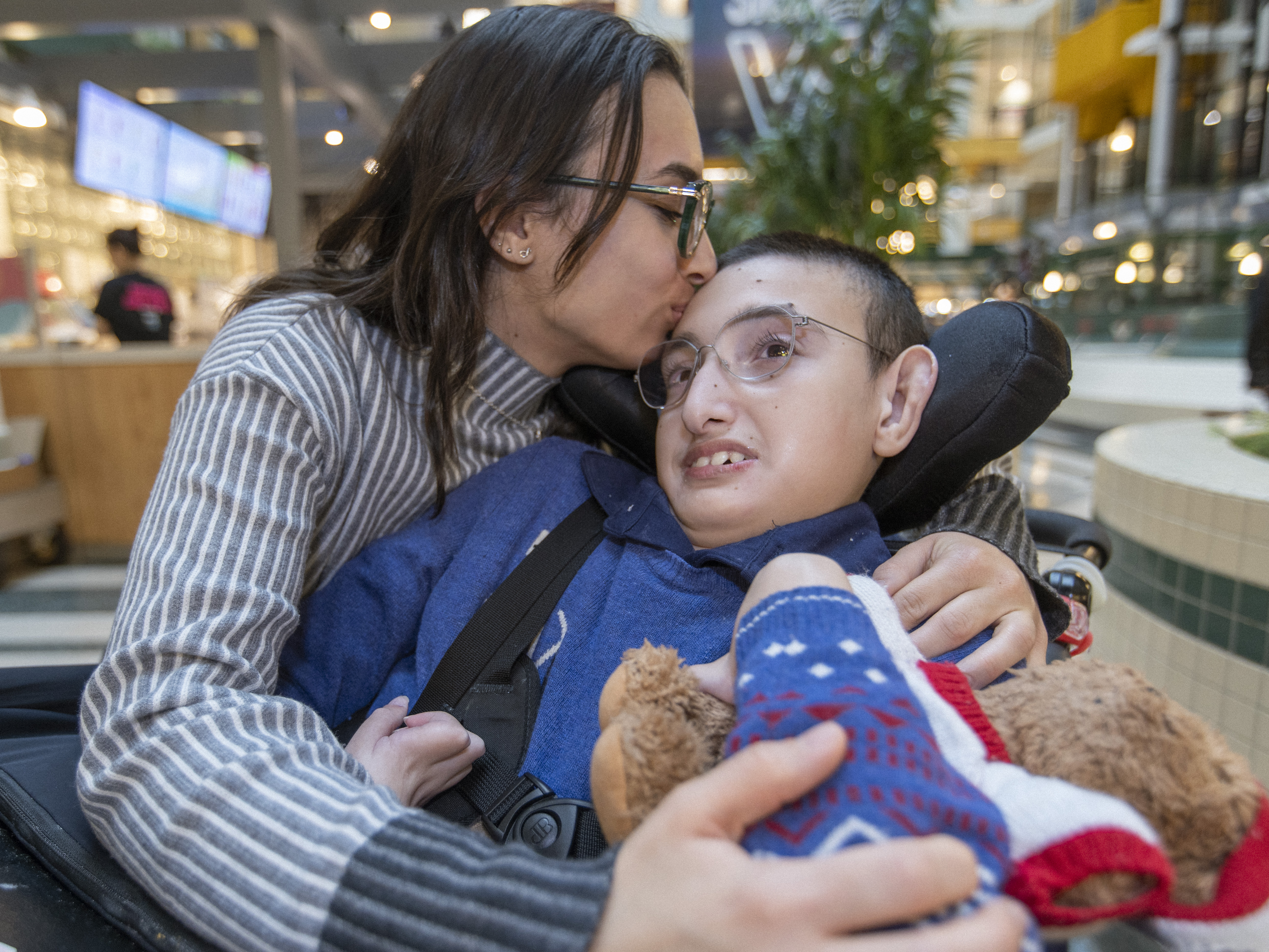 As Knida and Dea pushed Ridvin’s wheelchair through the Atrium, Knida paused to pull a small blanket from her bag, gently wrapping it around his feet in case they grew cold. She squeezed his hand. Though Ridvin is nonverbal, he grins at her touch – a bright, unmistakable smile.