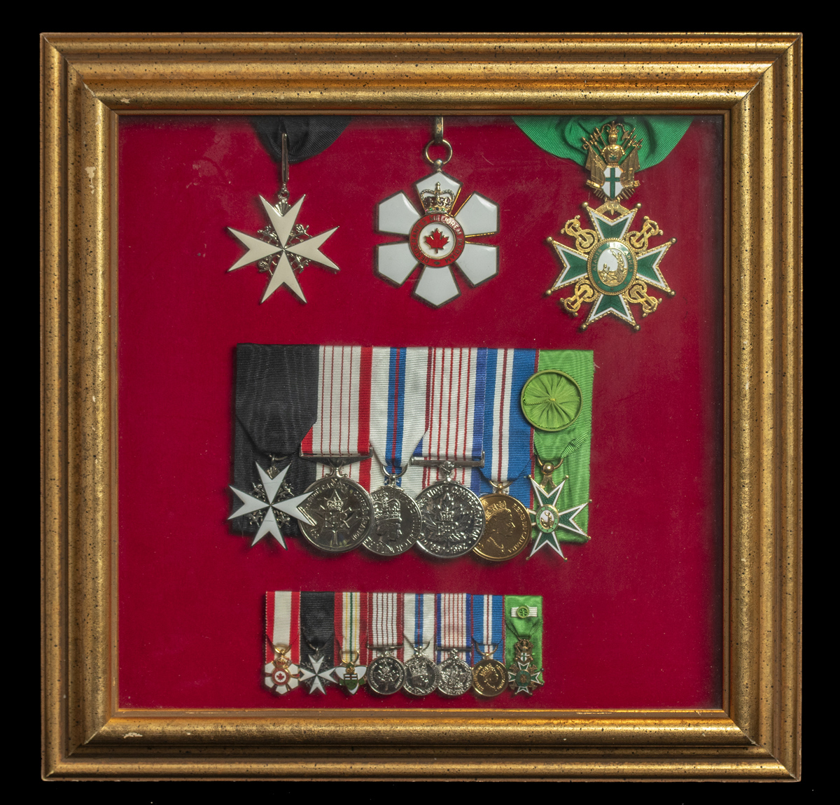 This impressive frame proudly showcases multiple awards received by Dr. Robert (Bob) Salter, a distinguished surgeon-in-chief at SickKids and a pioneer in the field of paediatric orthopaedic surgery. Dr. Salter meticulously assembled this frame himself, reflecting his immense pride in these accolades. Among the notable awards adorning the frame are the Canadian Centennial Medal, the Queen's Silver Jubilee Medal (1977), the 125th Anniversary of the Confederation of Canada Medal, the Queen's Canada Gold Jubilee, the Order of Ontario (1988), the Officer of the Order of Canada medal (1977), the Most Venerable Order of the Hospital of St. John of Jerusalem, and the Order of Saint Lazarus of Jerusalem medal. Each of these honours serves as a testament to Dr. Salter's unwavering commitment to advancing the field of paediatric orthopaedic surgery. Dr. Salter also designed the medical logo of SickKids, which is also shown on the accompanying tie he also designed, which lies at the base.