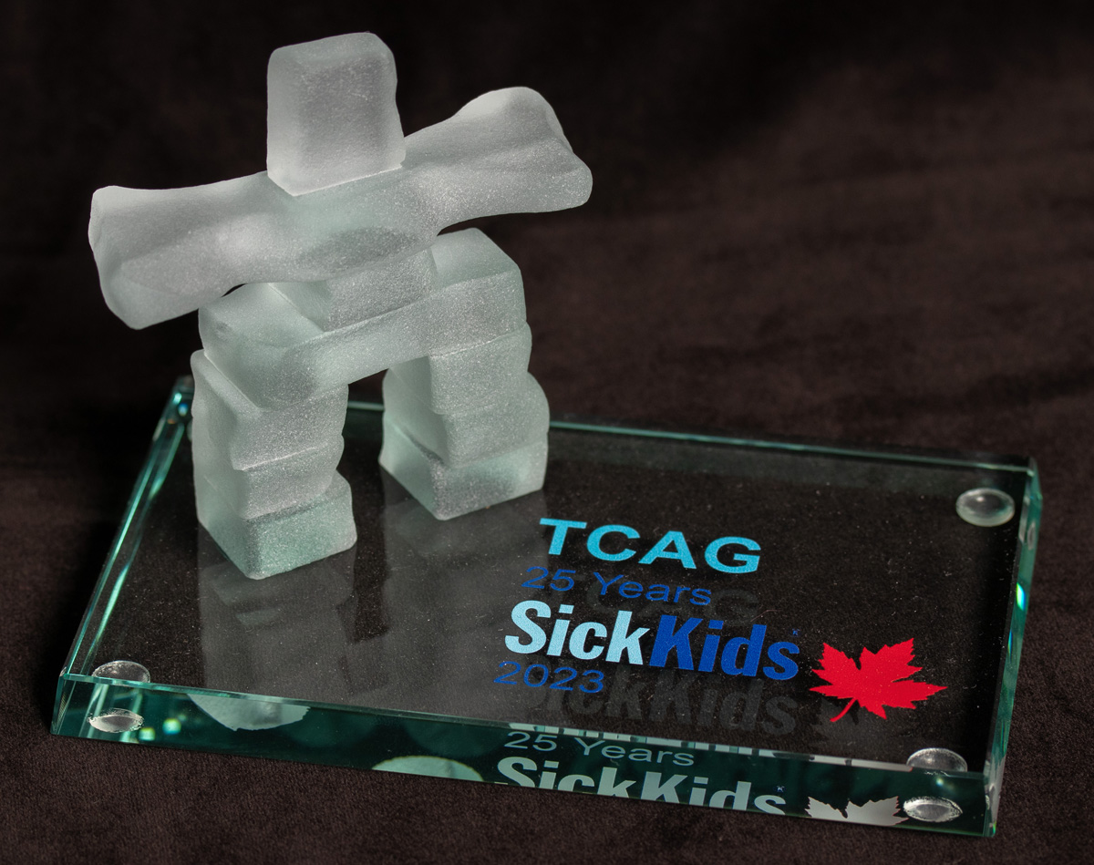 Founded by Dr. Lap-Chee Tsui and Dr. Stephen Scherer, The Centre for Applied Genomics (TCAG) is dedicated to conducting and promoting groundbreaking research in genomics including service and training support for academic, government, and private sector scientists worldwide. TCAG is part of CGEn, established in 2015 with McGill University and the University of British Columbia, an Canada Foundation for Innovation Major Science Initiative. On September 19, 2023, TCAG celebrated its 25th Anniversary with a symposium featuring previous TCAG staff and users. The Inukshuk - meaning "in the likeness of a human" - for TCAG represents the many thousands of SickKids patients, research participants, and people from all over the world, who have had their DNA sequenced at TCAG. This gift was given to speakers and key guests of the symposia.
