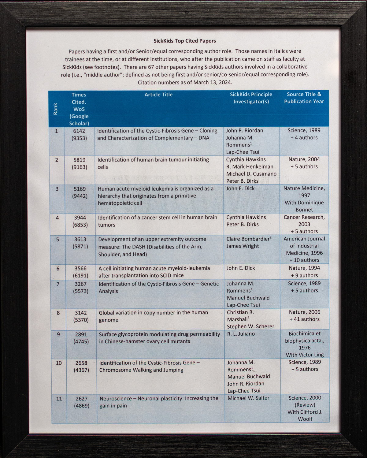 "Genetics in Medicine" is the world’s top selling medical genetics textbook. First written and published by Drs. Margaret (Peggy) and John Thompson in 1966, the book was adopted worldwide. Dr. Peggy Thompson, who joined SickKids in 1963, was working at SickKids when she co-wrote the first edition. Later editors from SickKids included Dr. Roderick McInnes (7th and 8th Editions 2015), Dr. Ronald D. Cohn (9th Edition 2023) and Dr. Stephen W. Scherer (9th Edition 2023).