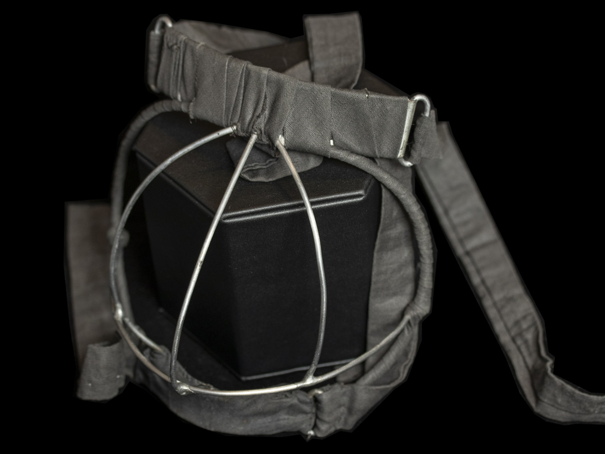 This is a custom mask made for a patient at SickKids. The patient was admitted in 1936, after being diagnosed with lead poisoning due to eating lead paint chips from their family porch. Lead paint had a sweet taste, which was something toddlers and children were likely to eat. This mask was made to be worn by children to prevent them from licking the paint. The mask was later donated back to SickKids.